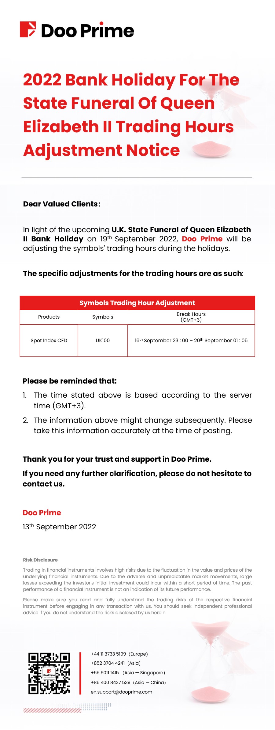 2022-09-13 | Holiday Hours , Trading Hours Adjustment