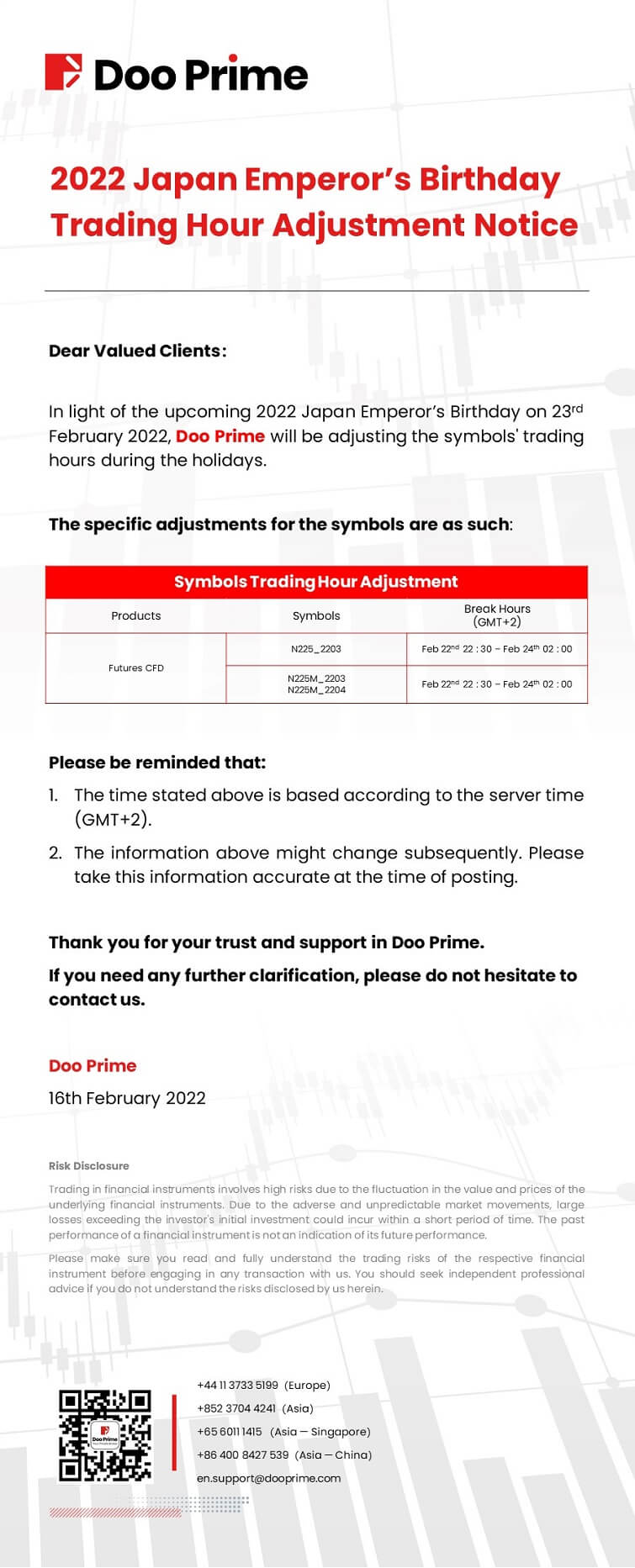 2022-02-16 | Holiday Hours , Trading Hours Adjustment