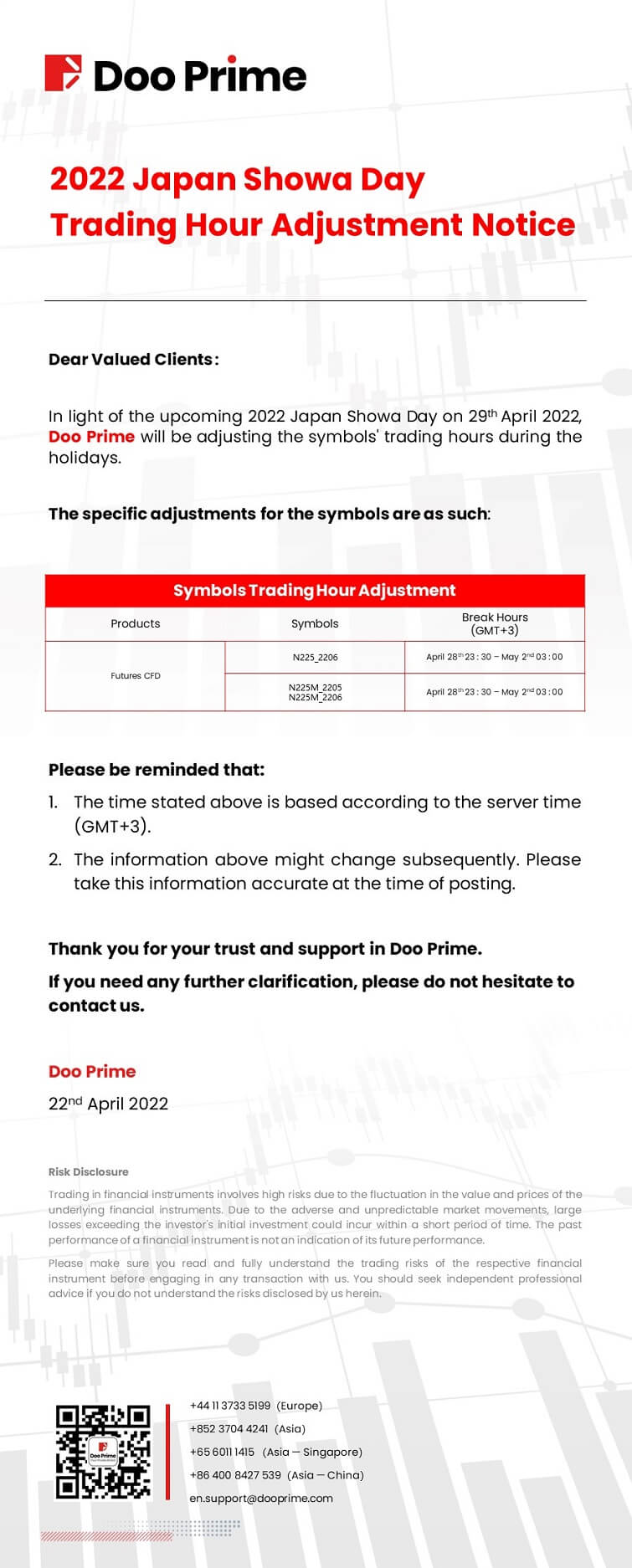 2022-04-22 | Holiday Hours , Trading Hours Adjustment
