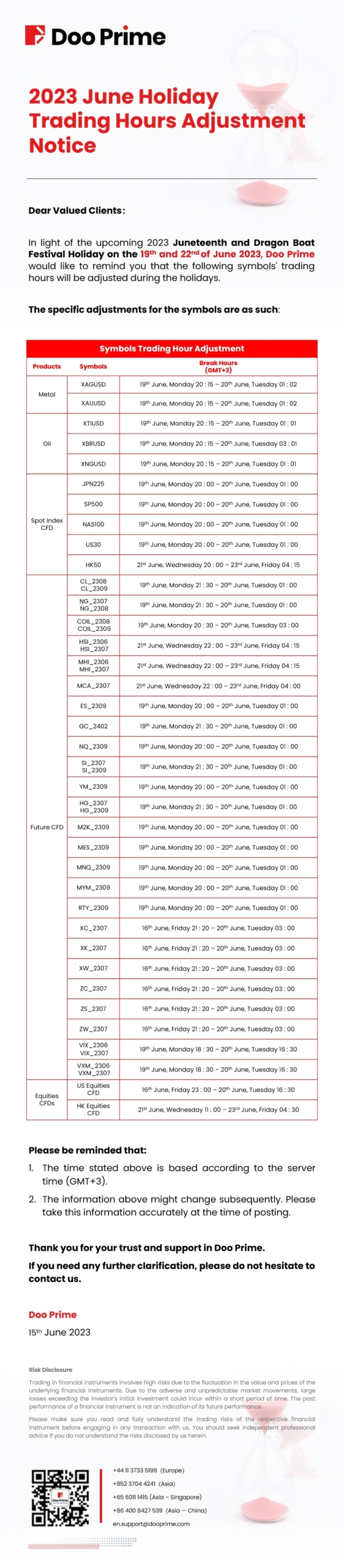2023-06-15 | Holiday Hours , Trading Hours Adjustment