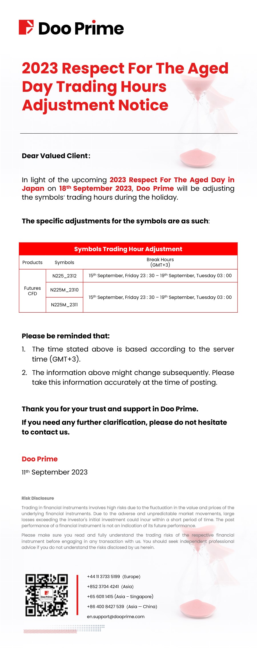 2023-09-11 | Holiday Hours , Trading Hours Adjustment