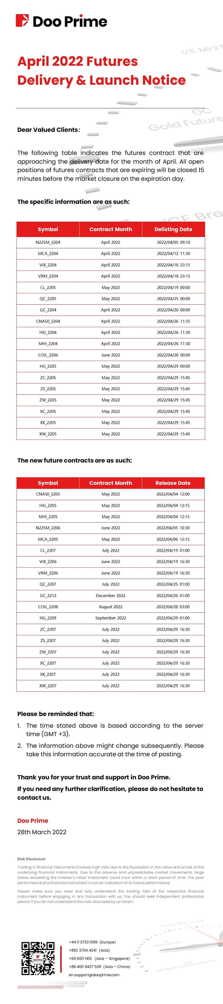 Doo Prime April 2022 Futures Delivery & Launch Notice