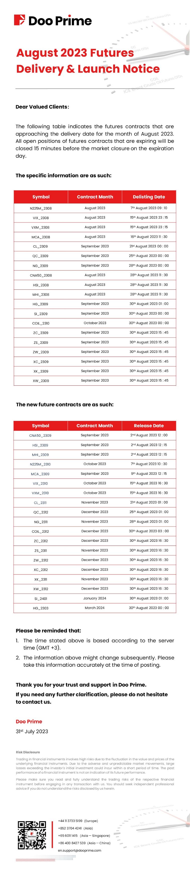Doo Prime August 2023 Futures Delivery & Launch Notice