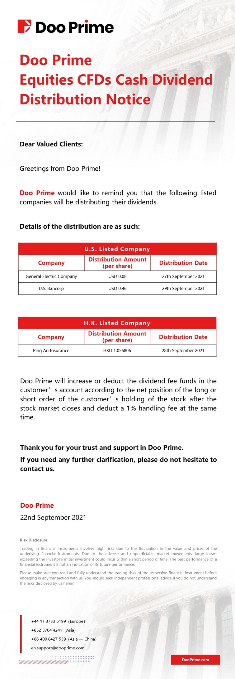 2021-09-22 | Equities CFDs Cash Dividend Distribution Notice