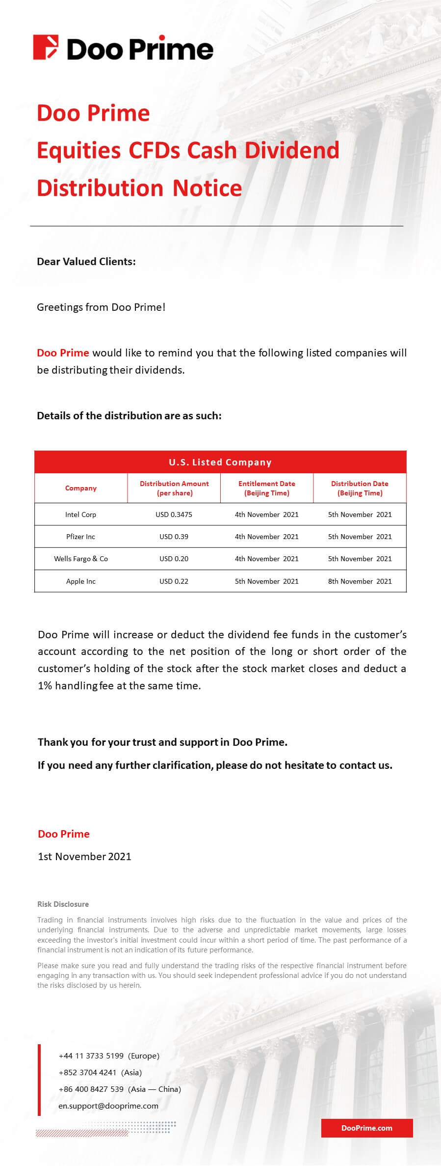2021-11-01 | Equities CFDs Cash Dividend Distribution Notice