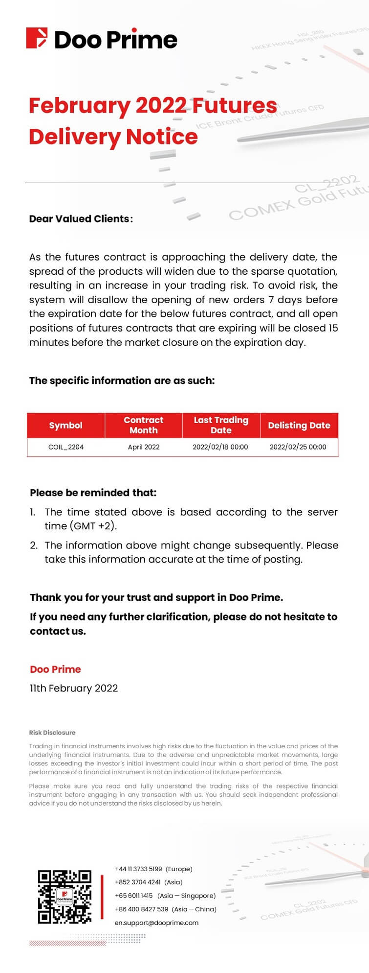 Doo Prime February 2022 Futures Delivery Notice
