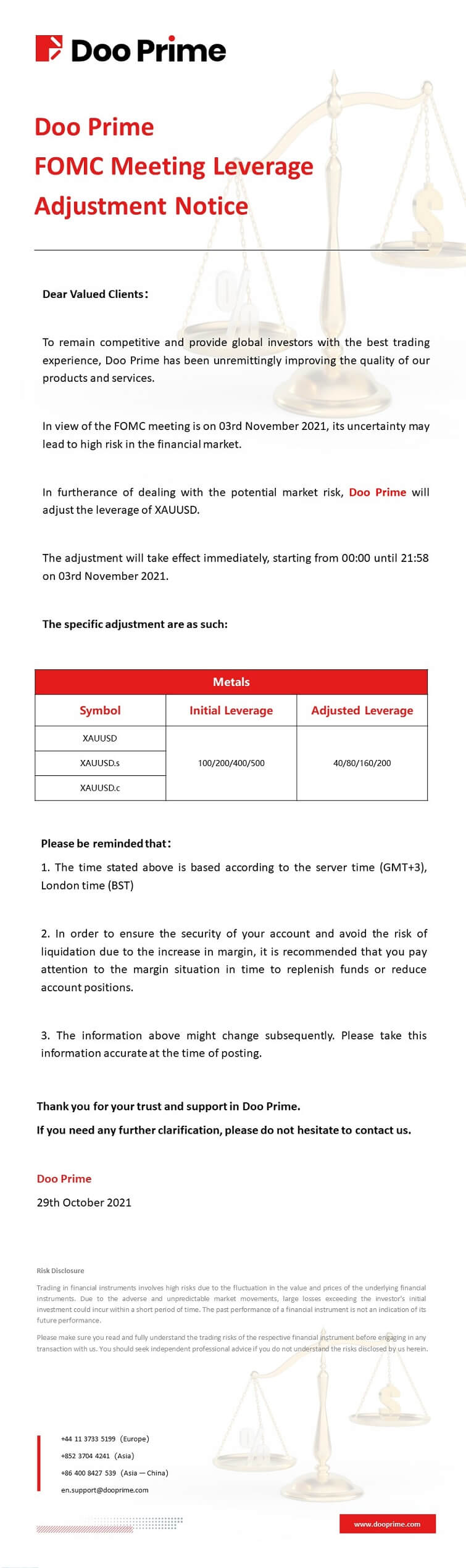 2021-10-29 | FOMC Meeting Leverage Adjustment Notice