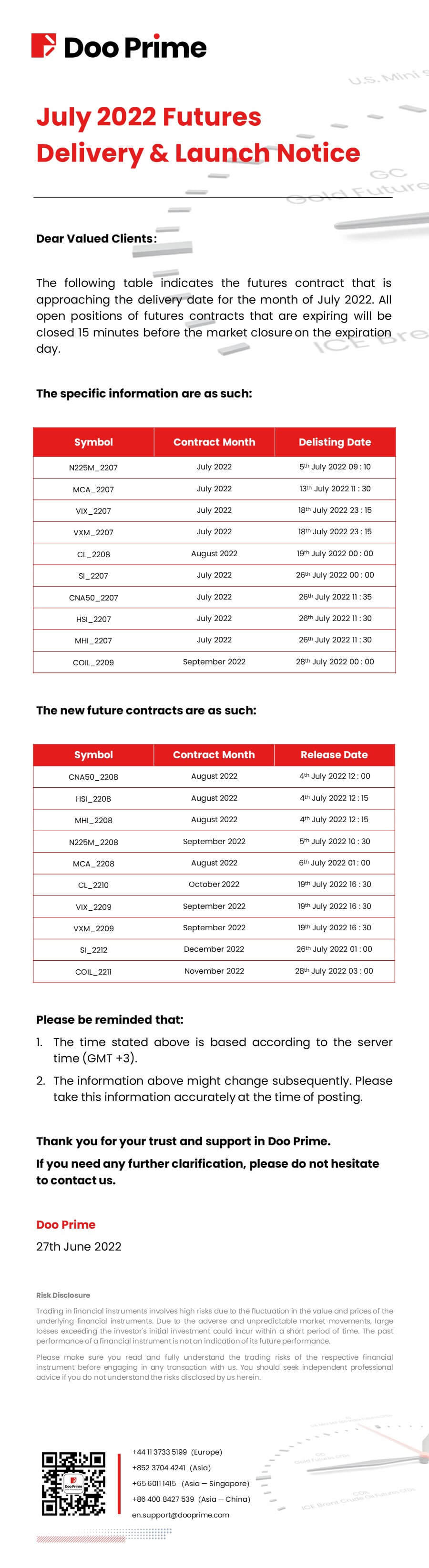 Doo Prime June 2022 Futures Delivery & Launch Notice