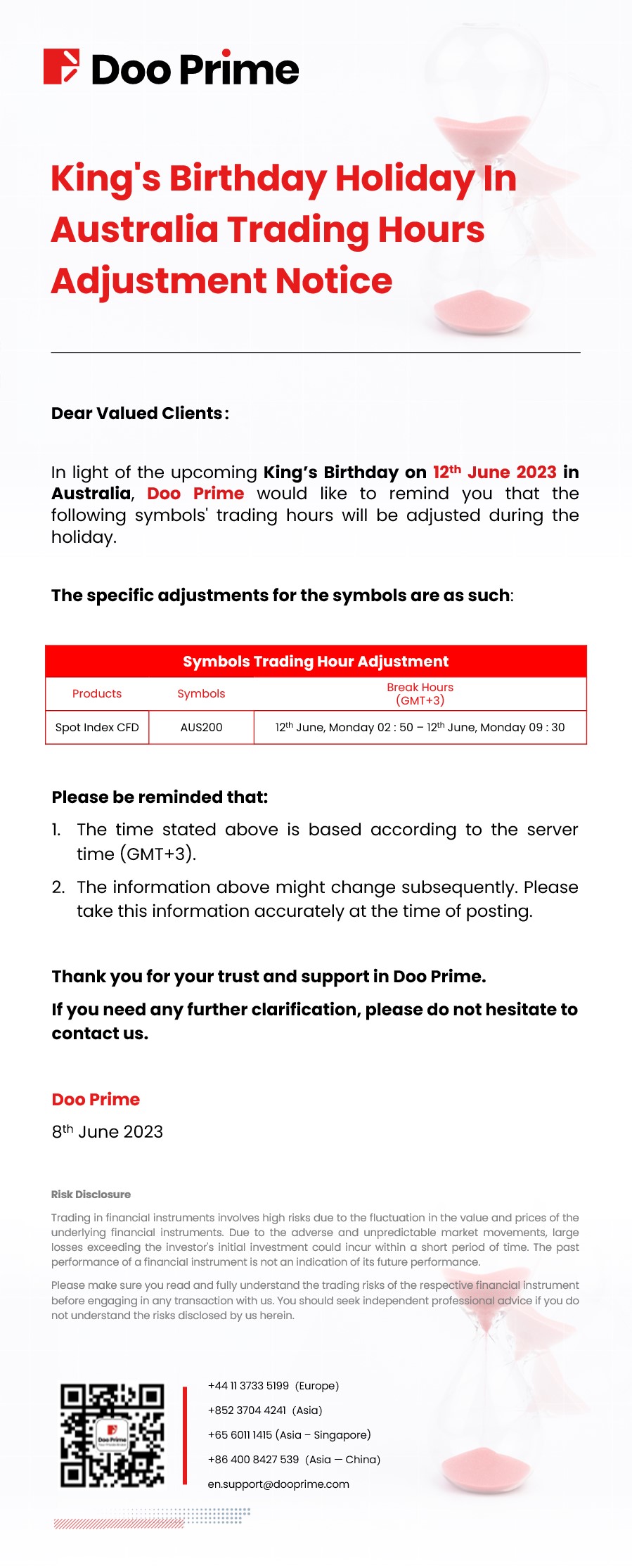 2023-06-08 | Holiday Hours , Trading Hours Adjustment