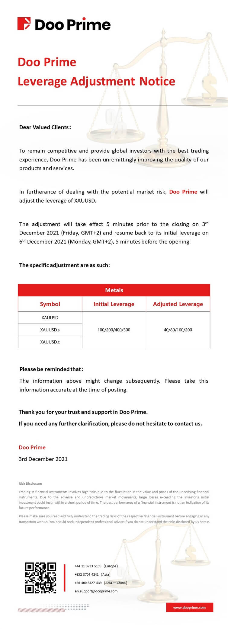 2021-12-03 | Leverage Adjustment Notice