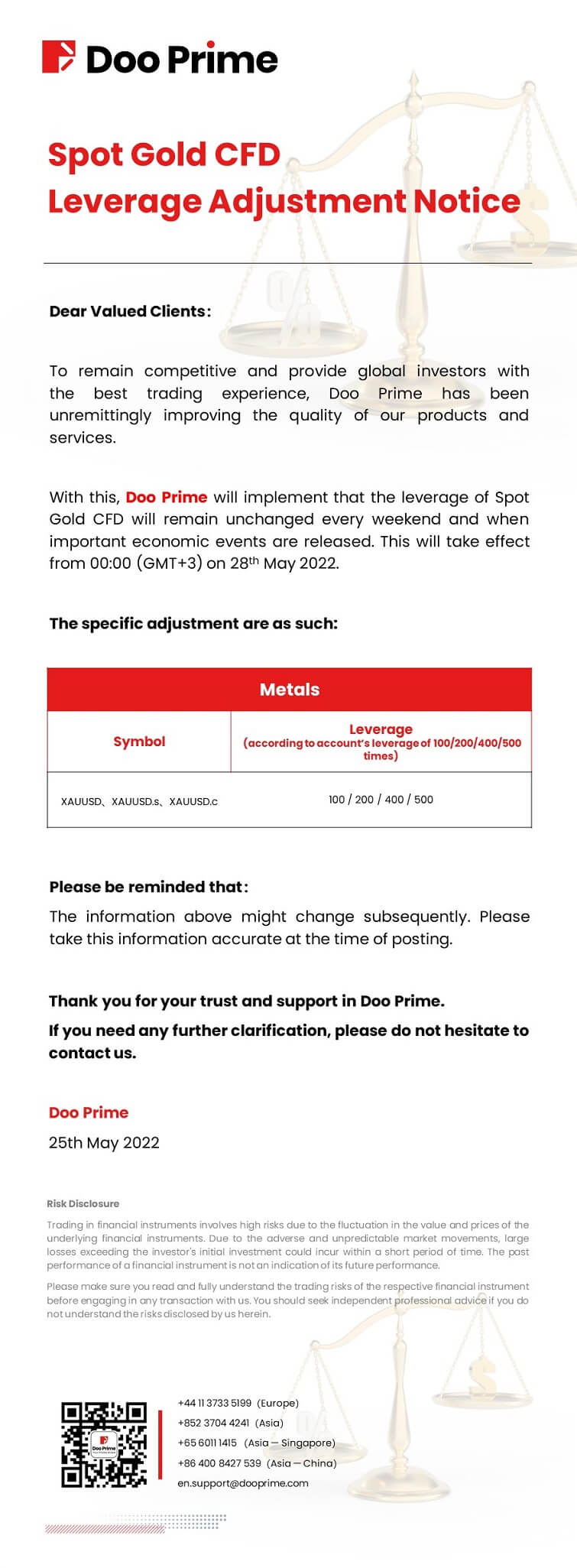 2022-05-25 | Leverage Adjustment Notice , Precious Metals