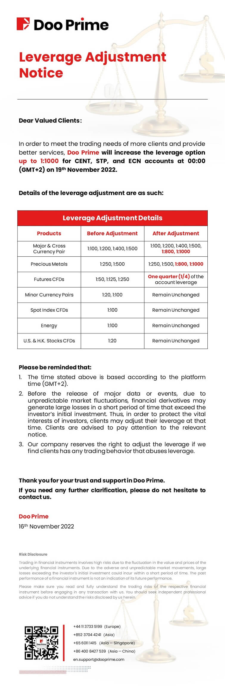 2022-11-16 | Commodities , Forex , Futures , Leverage Adjustment Notice , Precious Metals , Securities