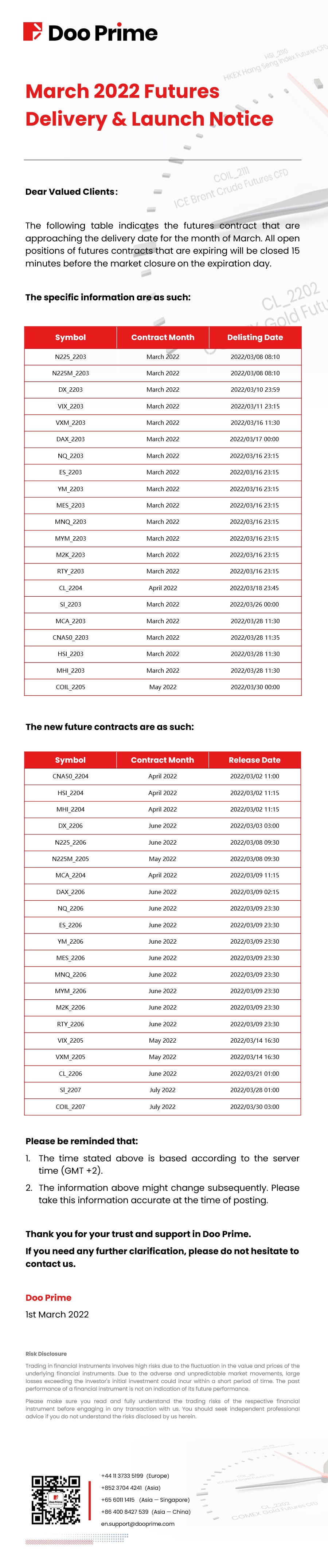 2022-03-01 | Futures Delivery & Launch Notice