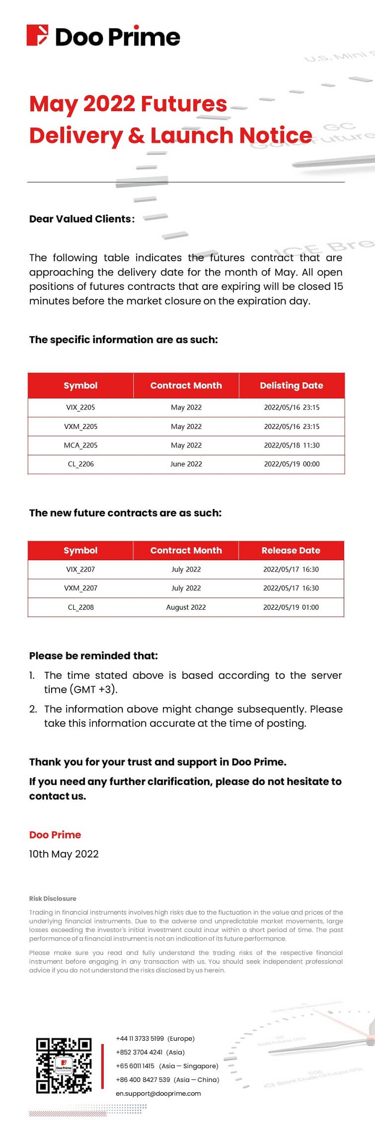 2022-05-10 | Futures , Futures Delivery & Launch Notice