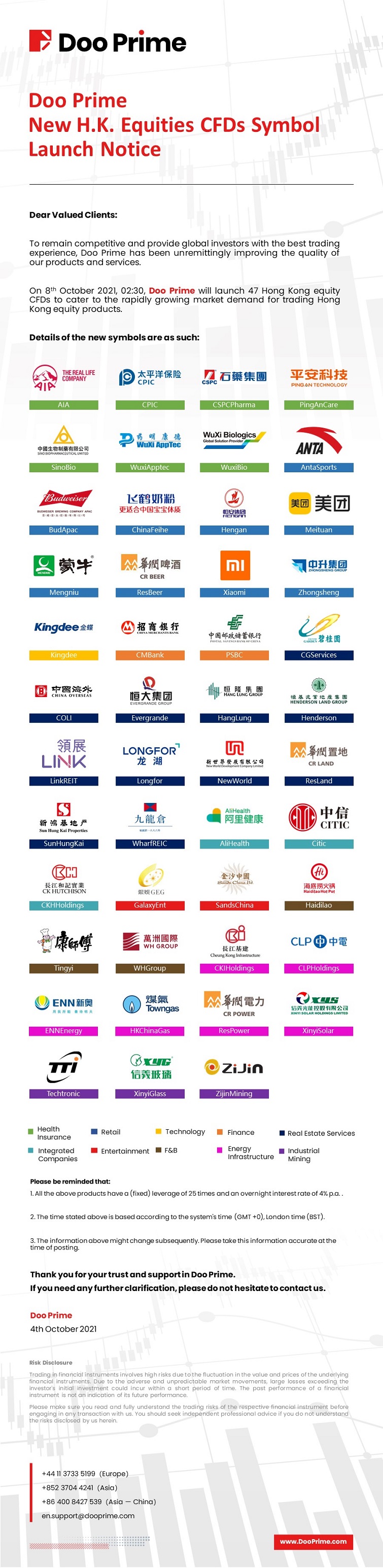 2021-10-04 | New HK Equities CFDs Symbol Launch Notice , New Symbols Launch
