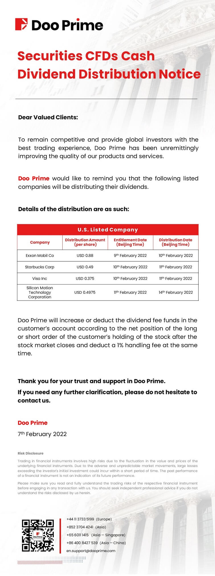 2022-02-07 | Securities CFDs Cash Dividend Distribution