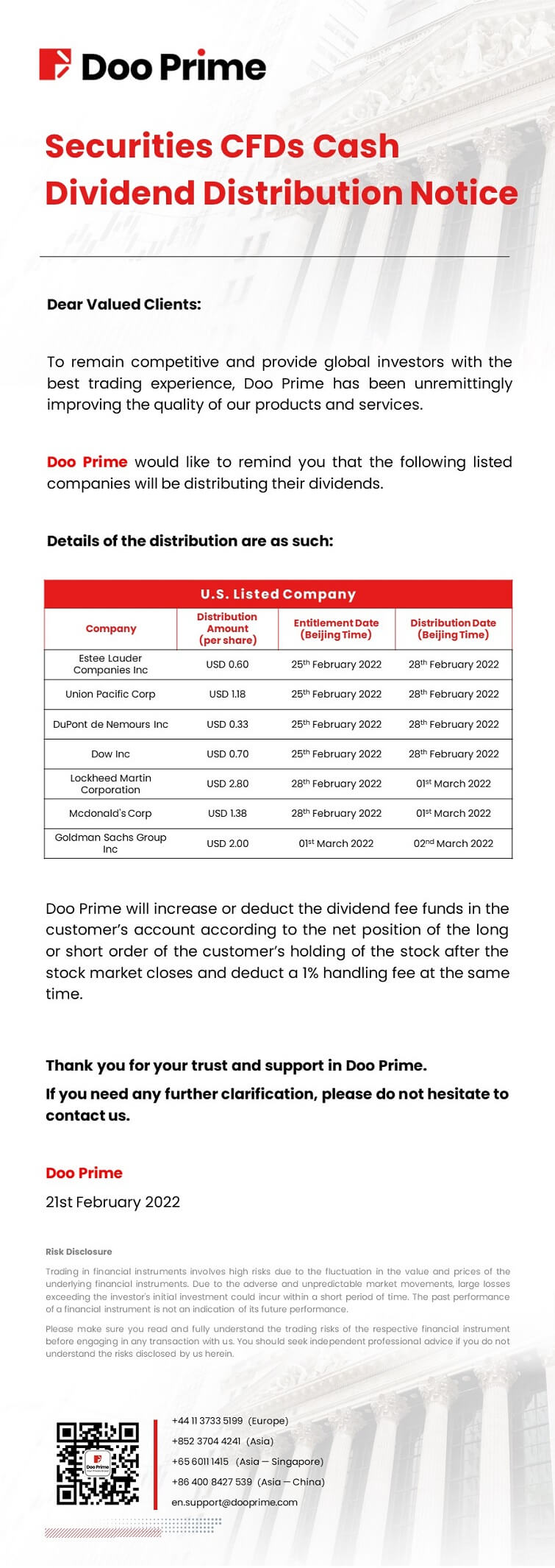 2022-02-21 | Securities CFDs Cash Dividend Distribution