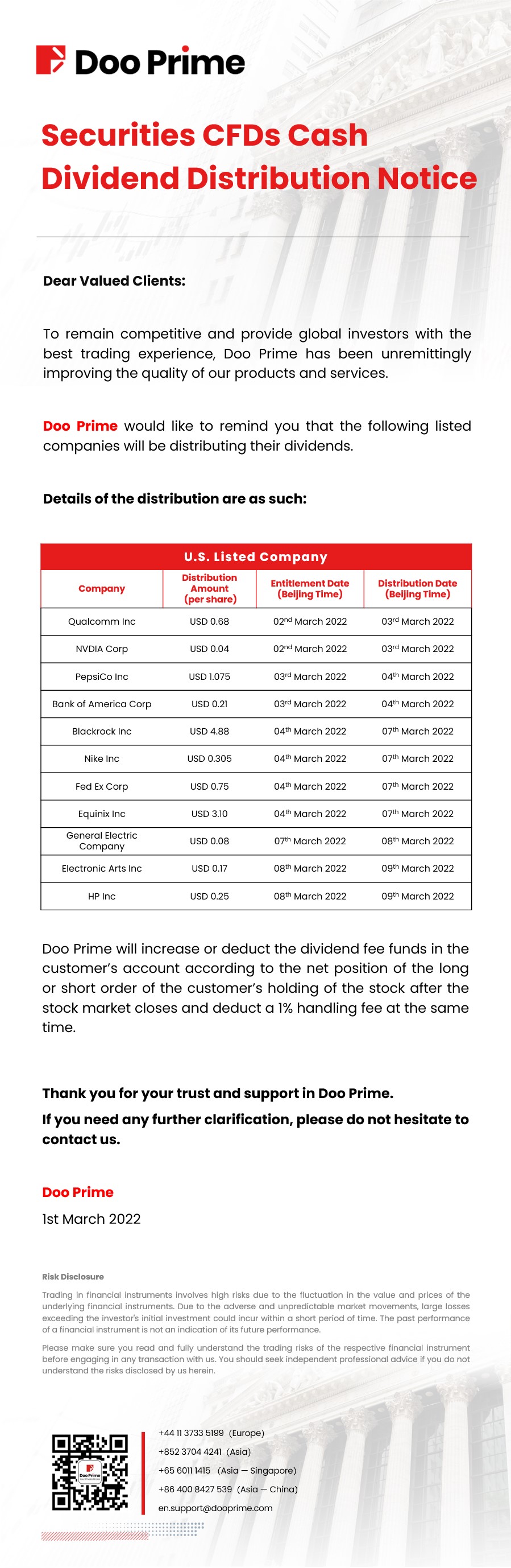 2022-03-01 | Securities CFDs Cash Dividend Distribution