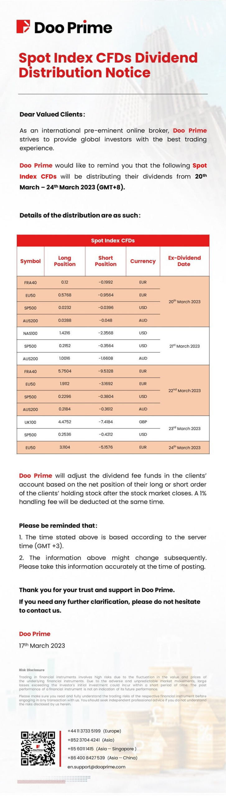 2023-03-17 | Dividend Distribution Notice , Spot Index
