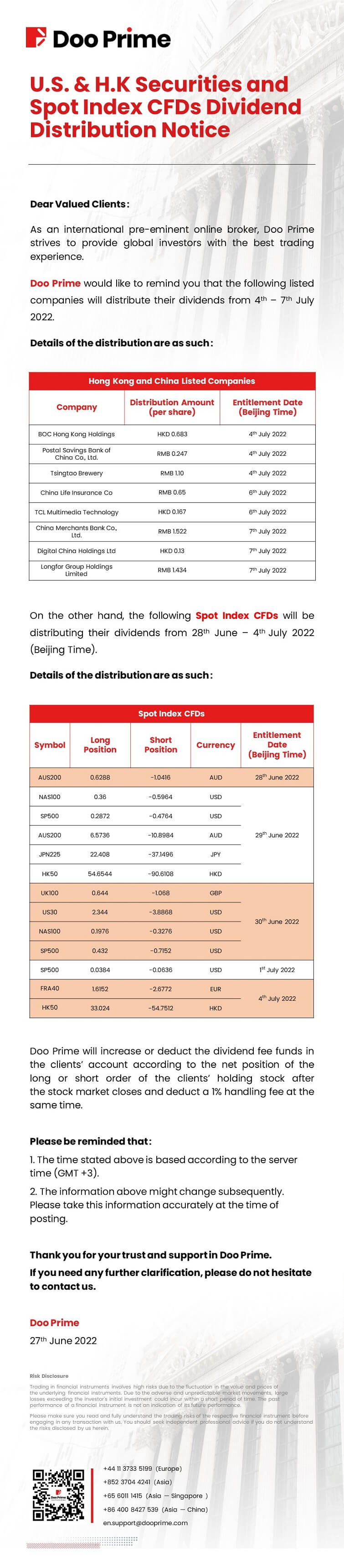 2022-06-27 | Dividend Distribution Notice , Securities , Spot Indices