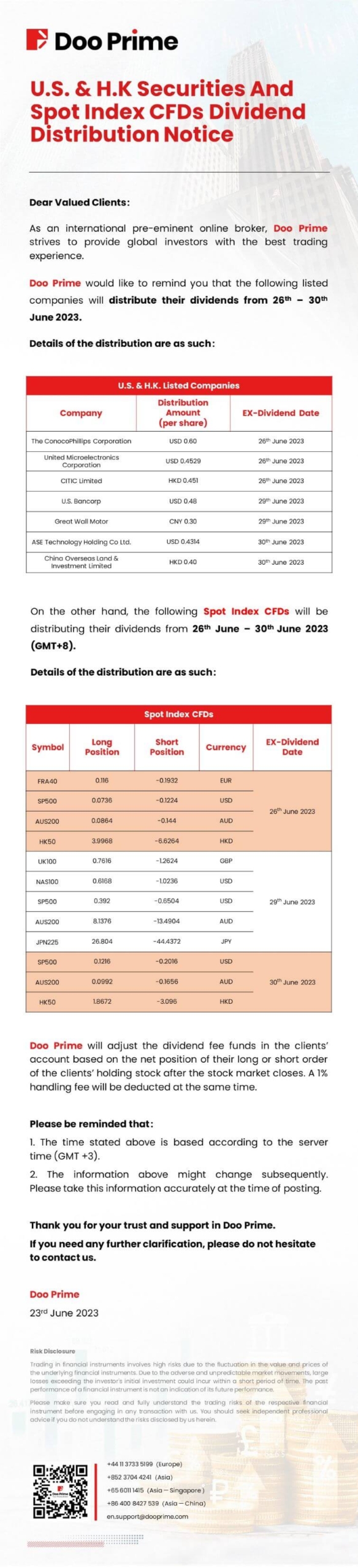 2023-06-23 | Dividend Distribution Notice , Securities , Spot Index