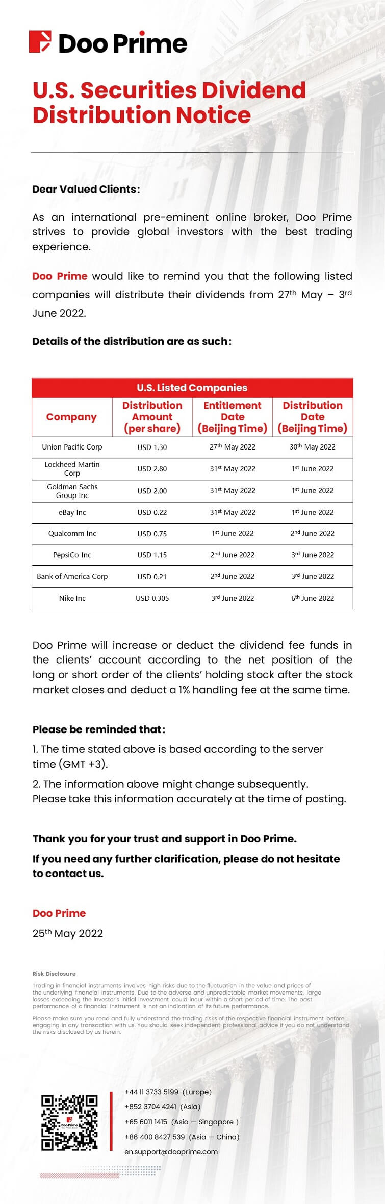 Doo Prime U.S. Securities Dividend Distribution Notice