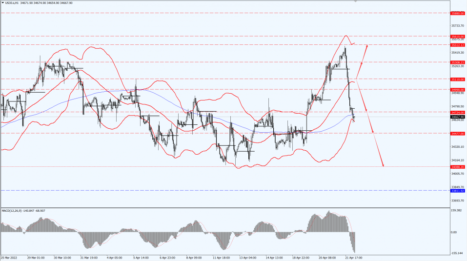 The Dow focuses on the 35110-line today. If the Dow runs stably below the 35110-line, it will pay attention to the support strength of the 34724 and 34477 positions. If the Dow breaks above the 35110-line, it will pay attention to the suppression strength of the 35308 and 35512 positions.