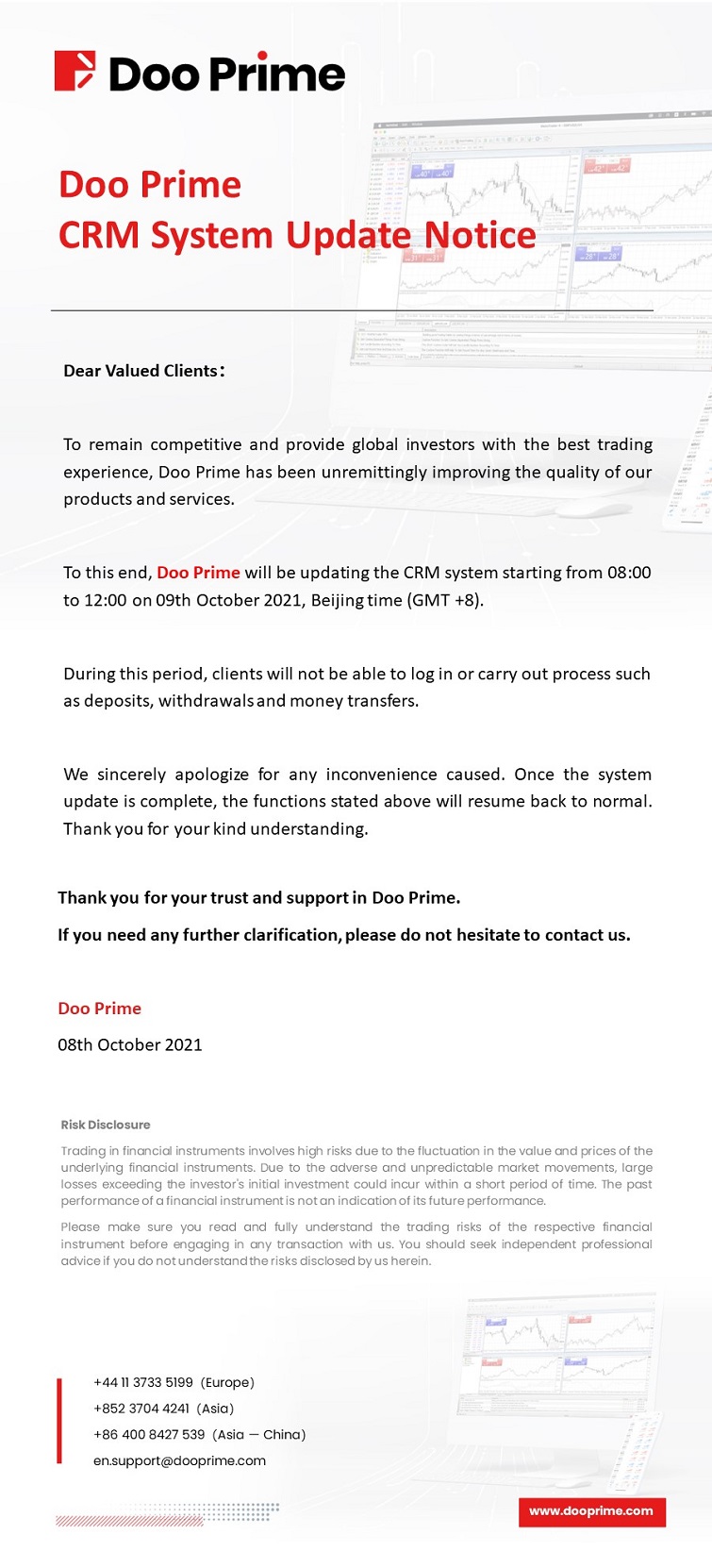 Doo Prime CRM System Update Notice