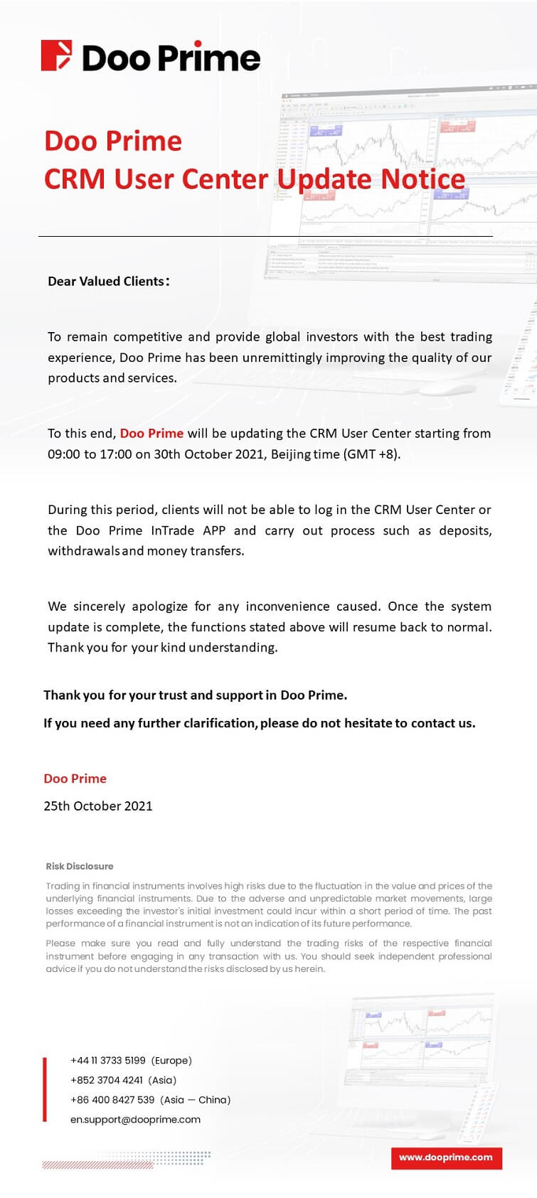 D Prime will upgrade MT4 Live 6 servers on April 18, 2026 to enhance performance. View the upgrade schedule and potential service impact.