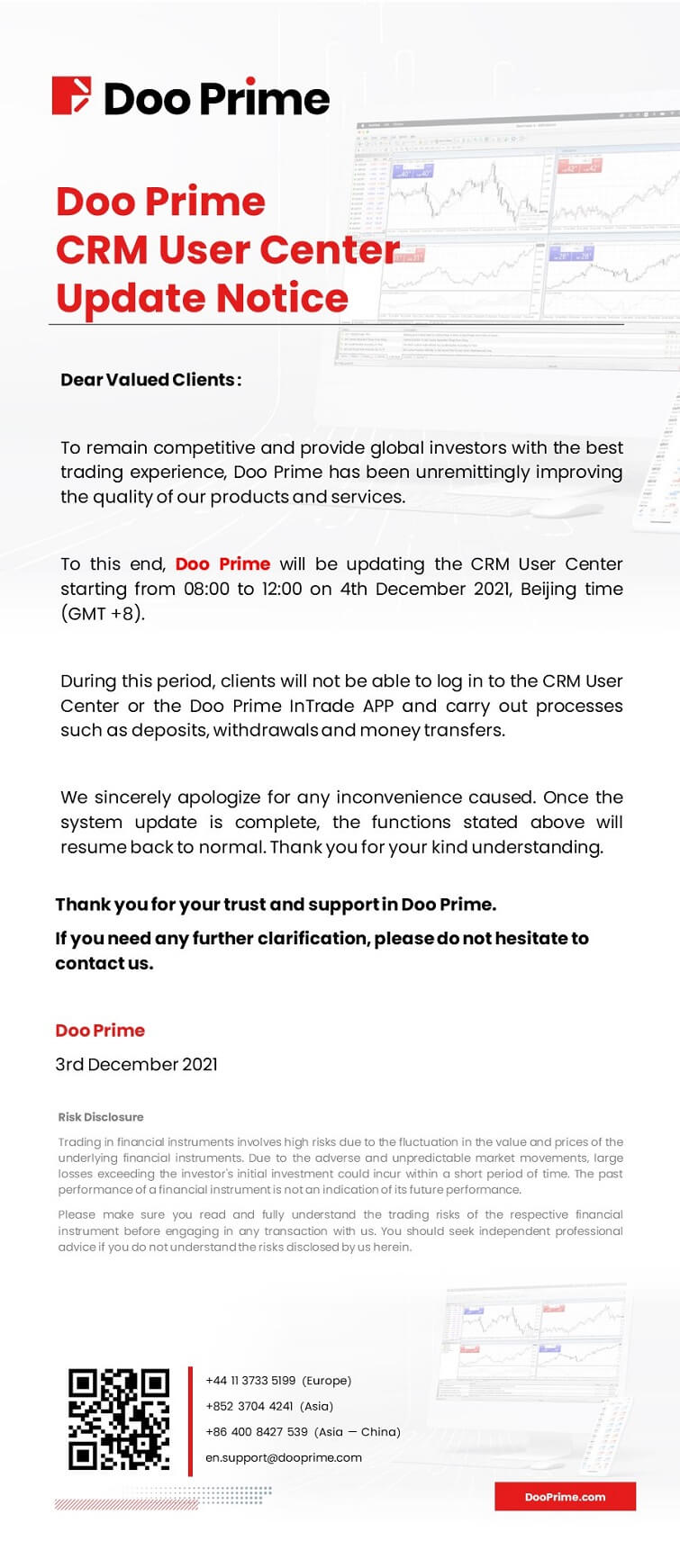 Doo Prime CRM User Center Update Notice