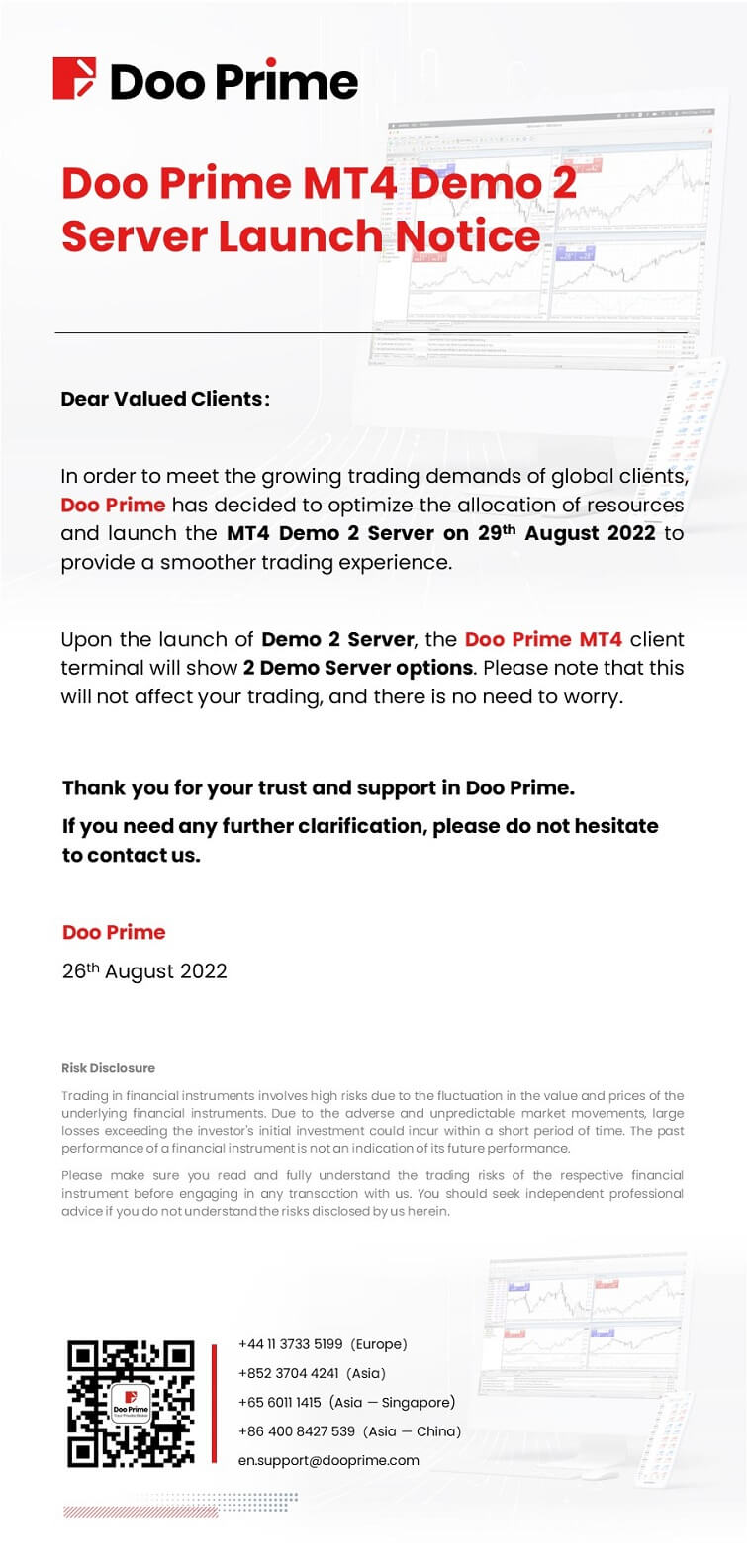 Doo Prime MT4 Demo 2 Server Launch Notice