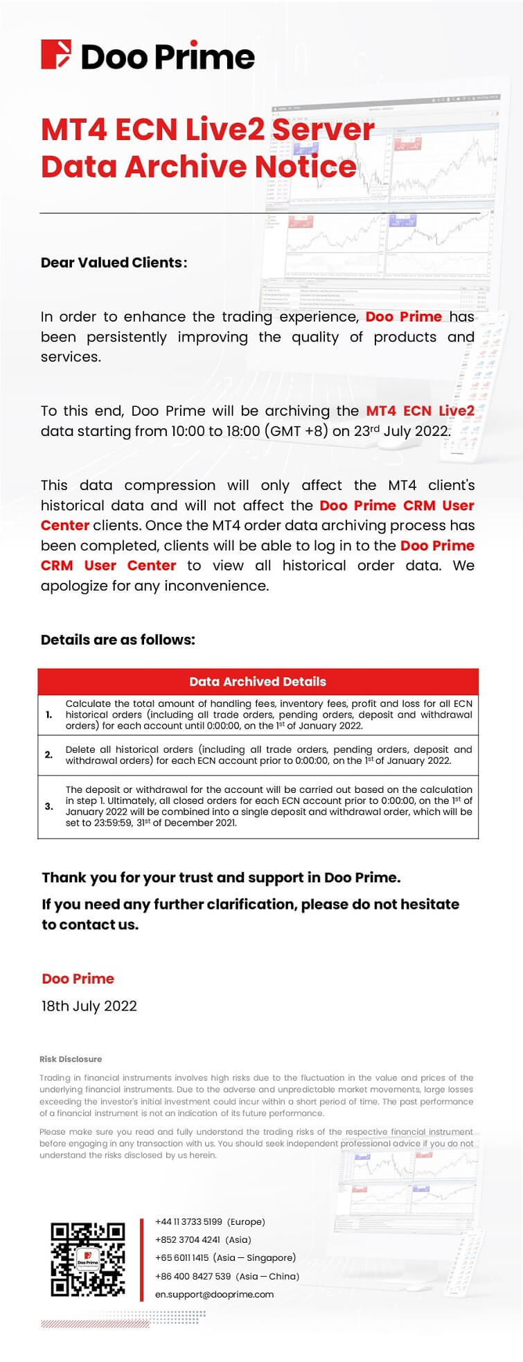 Doo Prime MT4 ECN Live2 Server Data Archived Notice