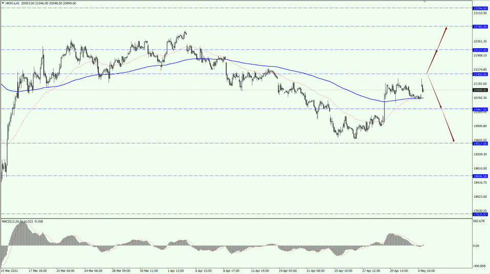 HK50 focuses on the 21450-line today. If HK50 can run stably below the 21450-line, then pay attention to the support strength of 20467 and 19517. If HK50 runs above the 21450-line, then pay attention to the suppression strength of 22127 and 22785.