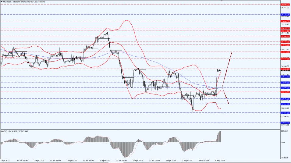 The Dow focuses on the 33390-line today. If the Dow runs stably above the 33390-line, it will pay attention to the suppression strength of the 34088 and 34477 positions. If the Dow falls below the 33390-line, it will pay attention to the support strength of the 32975 and 32781 positions.