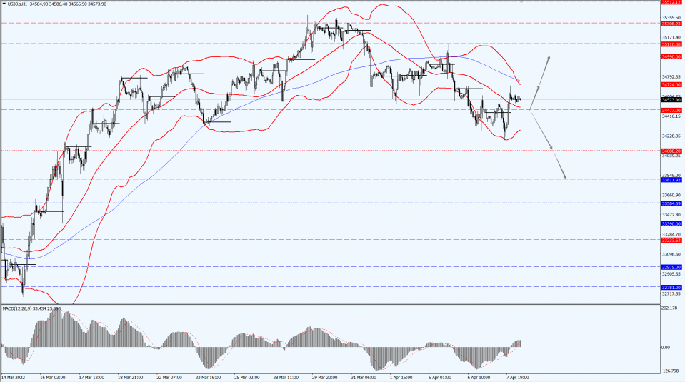 The Dow focuses on the 34477-line today. If the Dow runs steadily above the 34477-line, it will pay attention to the suppression strength of the 34724 and 35110 positions. If the Dow index breaks below the 34477-line, it will pay attention to the support strength of the 34088 and 33811 positions.