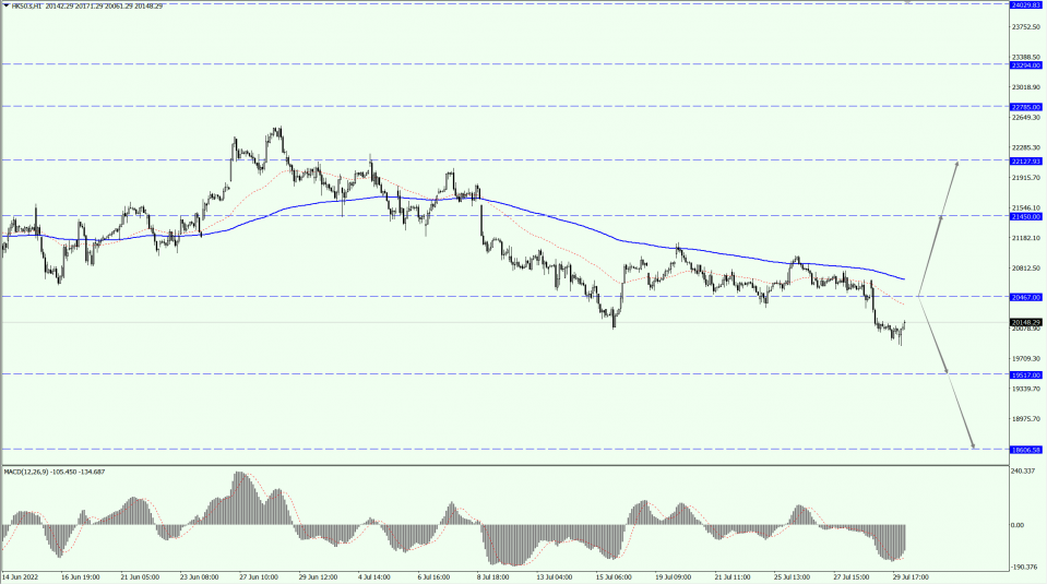 HK50 focuses on the 20467-line today. If HK50 can run stably above the 20467-line, then pay attention to the suppression strength of 21450 and 22127. If HK50 runs below the 20467-line, then pay attention to the support strength of 19517 and 18606.