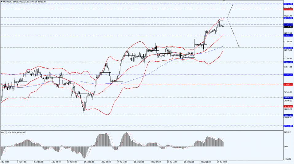 The Dow is concerned about the 32975-line today. If the Dow runs steadily above the 32975-line, it will pay attention to the suppression strength of the 33233 and 33390 positions. If the Dow runs steadily below the 32975-line, it will pay attention to the support strength of the 32455 and 32083 positions.