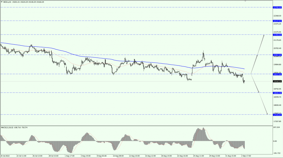 HK50 focuses on the 19517-line today. If HK50 can run stably above the 19517-line, it will pay attention to the suppression strength of the 20467 and 21450 positions. If the HK50 runs below the 19517-line, it will pay attention to the support strength of the 18606 and 17535 positions.