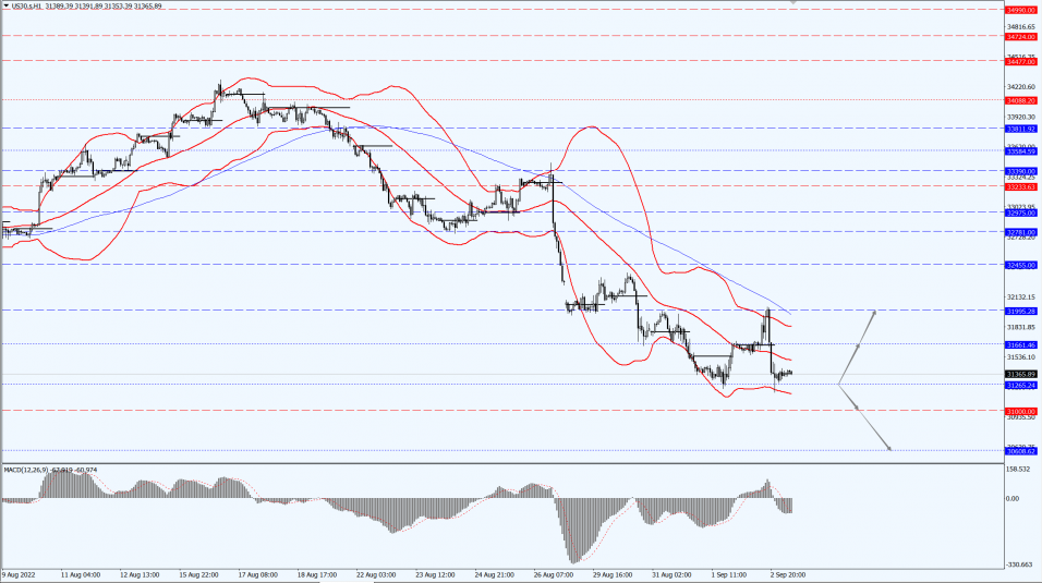The Dow is focused on the 31265-line today. If the Dow runs steadily above the 31265-line, then it will pay attention to the suppression strength of the two positions of 31661 and 31995. If the Dow is running steadily below the 31265-line, it will pay attention to the support strength of the two positions of 31000 and 30608.