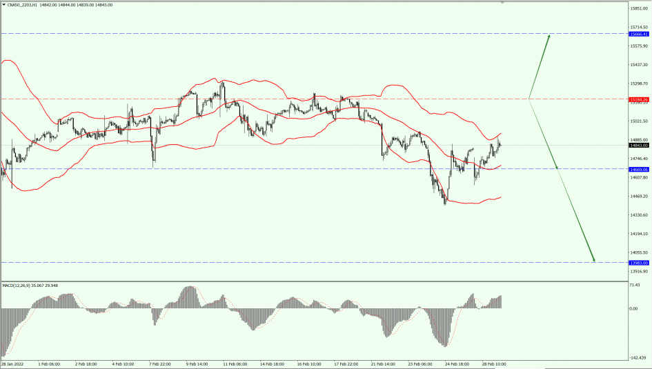 FTSE China A50 pays attention to the suppression strength of the 15184-line today. If the A50 runs stably below the 15184-line, pay attention to the support strength of the two positions of 14669 and 13983. If the A50 strength breaks above the 15184-line, it will open up further upward trend. At that time, pay attention to the 15666-line the suppression strength.
