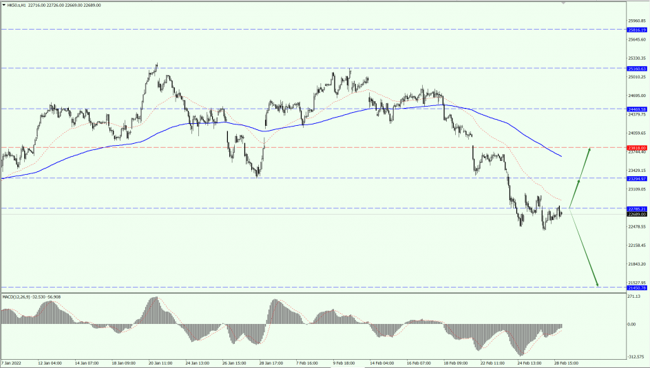 HK50 Index focuses on the 22785-line today. If HK50 can run stably above the 22785-line, then pay attention to the suppression strength of the two positions of 23294 and 23818. If the HK50 strength breaks below the 22785-line, then pay attention to the support of the 21450-line.