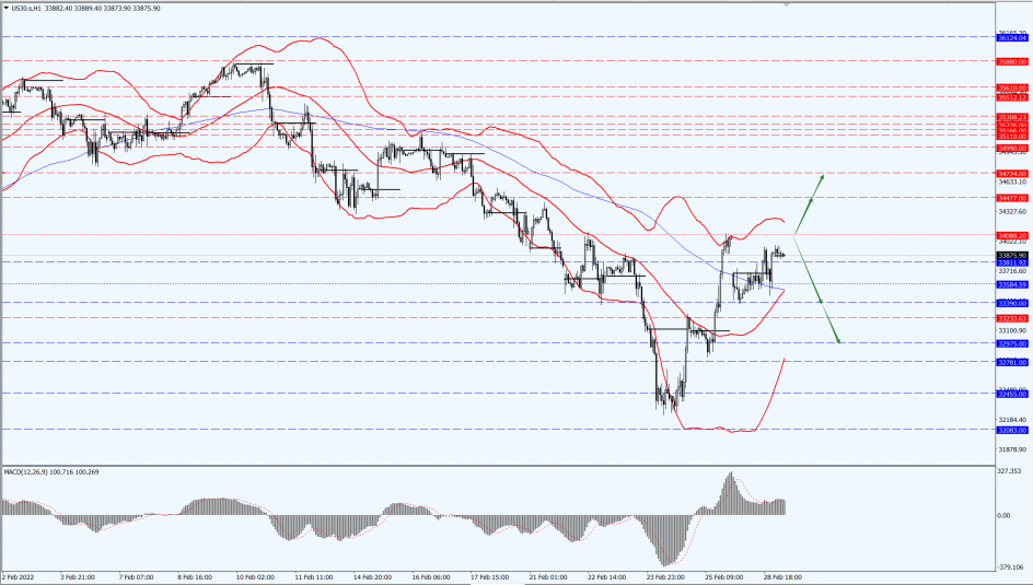 The Dow focuses on the 34088-line today. If the Dow runs stably below the 34088-line, then pay attention to the support strength of the 33390 and 32975 positions. If the Dow breaks above the 34088-line, then pay attention to the suppression of the 34477-line.