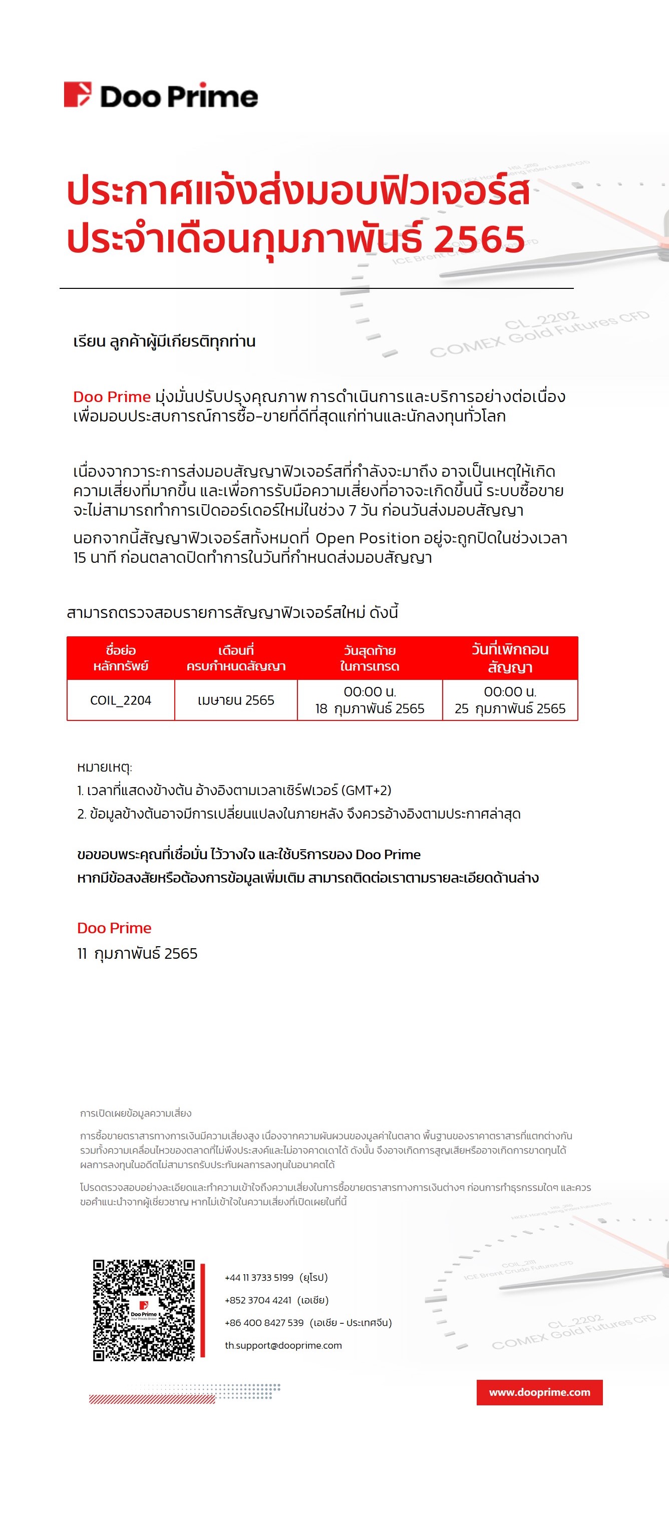 2022-02-11 | Futures Delivery , ส่งมอบฟิวเจอร์ส