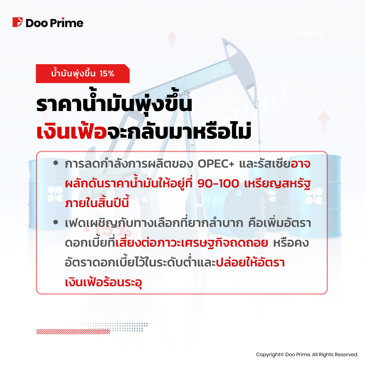 - อย่างไรก็ตาม ราคาน้ำมันอาจลดลงเช่นกันหากอัตราดอกเบี้ยที่สูงขึ้นขัดขวางการเติบโตของเศรษฐกิจโลก หรือหาก OPEC+ ตัดสินใจเพิ่มการผลิตน้ำมัน
